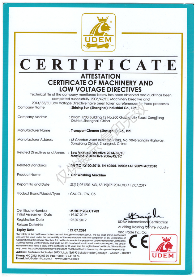 榮譽(yù)證書(shū) 車客林洗車機(jī)相關(guān)證書(shū)